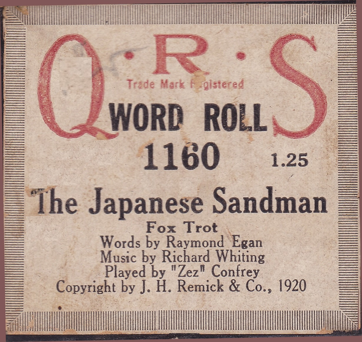 QRS 1160 "Japanese Sandman" played by Zez Confrey